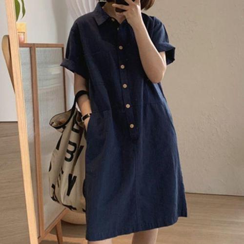 여성여름 면마원피스 빅사이즈 긴 기장 셔츠 솔리드버튼롱여성긴팔셔츠가디건면마셔츠여