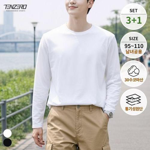 [텐제로]3+1 남녀공용 사계절 매일입는 순면 긴팔면티셔츠 이너티 2컬러 95-110 TZ26TL04