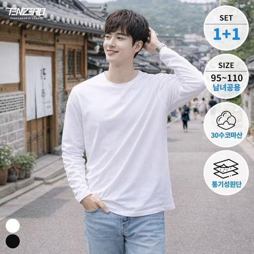 1+1 텐제로 남녀공용 사계절 매일입는 순면 긴팔면티셔츠 이너티 2컬러 95-110 TZ26TL02