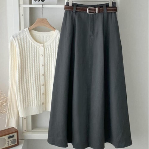 [옷자락]여자 심플 면혼방 라이오셀 벨티드 a라인 롱 스커트