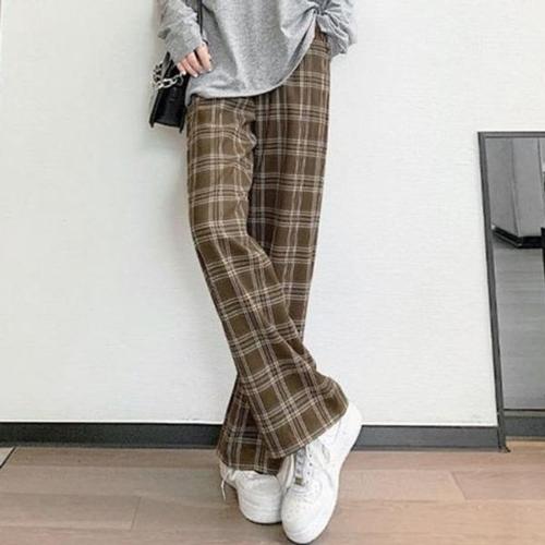[엄지척]체크 여성 가을 통바지 허리 밴드 와이드 팬츠 면 바_19660196_667501
