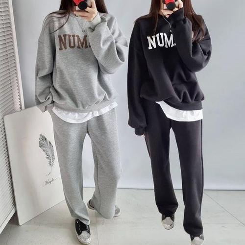 [유야]기모 레이어드 면 레터링 맨투맨 티셔츠 조거팬츠 트레이닝 세트 츄리닝 투피스 셋업 -PST0257H- ..