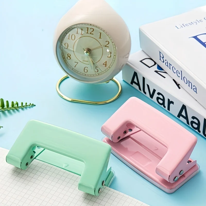 1pc, 솔리드 컬러 더블 홀 펀치, 휴대용 수동 홀 펀치, 사무실 바인딩 용품, 학교 일기 스크랩북에 적합
