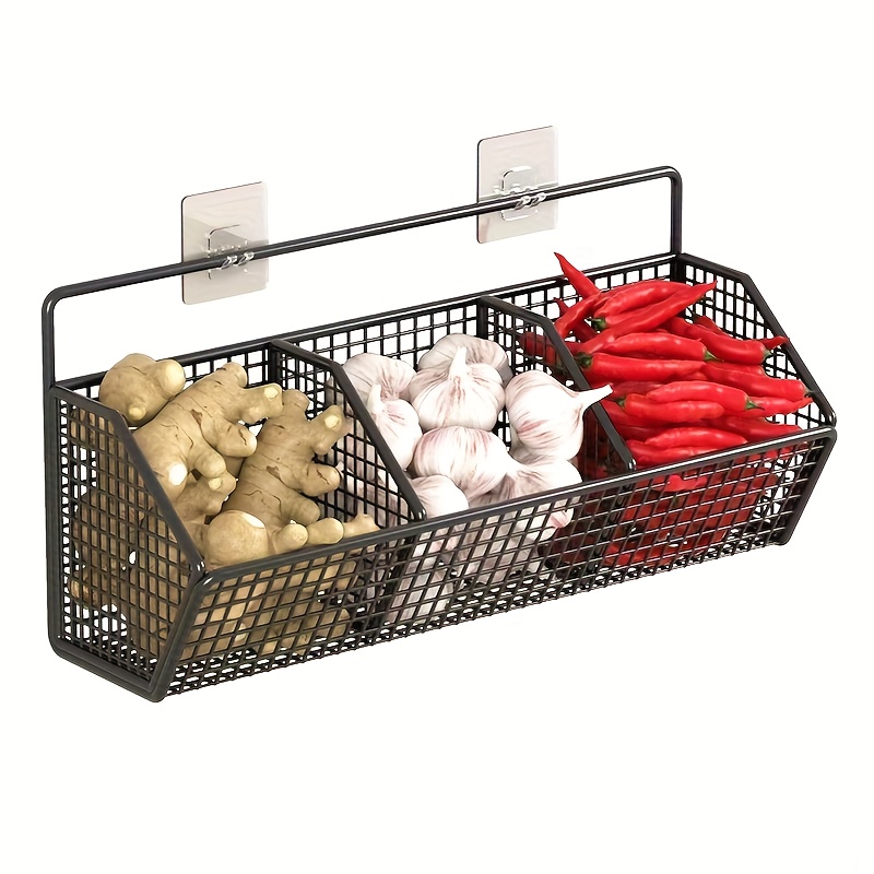 TEMU 대형 헤비듀티 금속 주방 수납바구니 - 조절식 선반 & 걸이 시스템, 견고한 블랙프레임, 넉넉한 수납공간 (팬트리/냉장고/찬장용) - 야채·양념·감자·무·마늘을 위한 공간절약형 수직디자인 - 모던 팜하우스 스타일, 쉬운 조립, 내구성 있는 금속제작