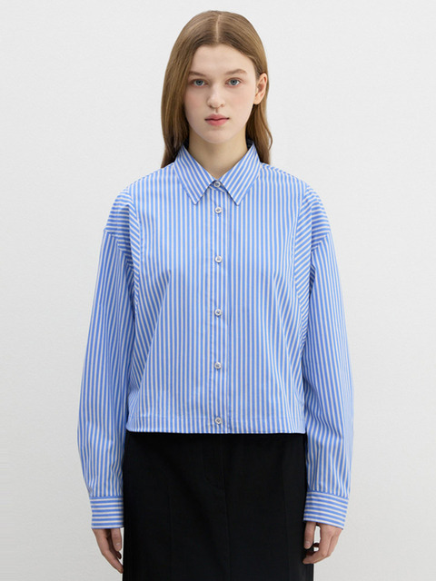 [시스티나] 배색 칼라 스트라이프 셔츠