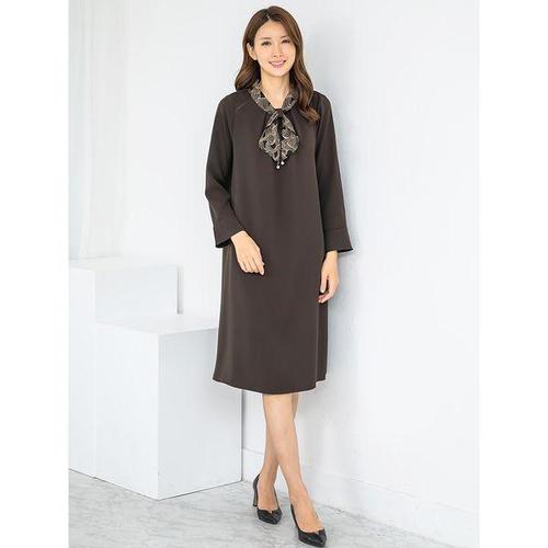 [모슬린]엄마옷 배색 스카프 타이 원피스 MQG123928 마담 미시 중년여성 빅사이즈 할머니옷 50대 60대 70..