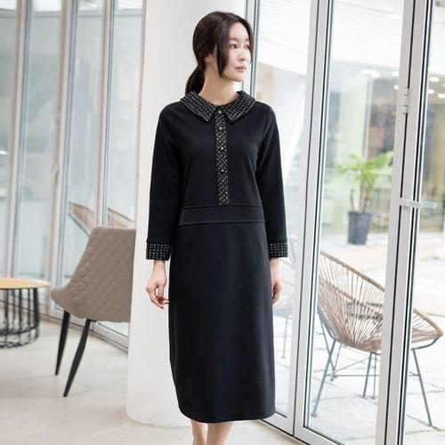 [모슬린]엄마옷 트위드 카라 긴팔원피스 MQG124887 마담 미시 중년여성 빅사이즈 할머니옷 50대 60대 70..