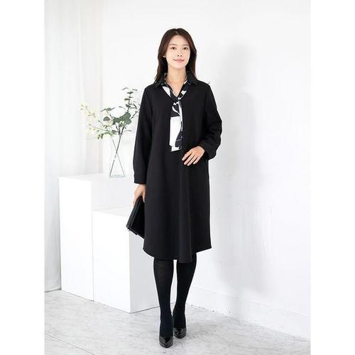 [모슬린]엄마옷 배색타이 카라원피스 MQG123888 마담 미시 중년여성 빅사이즈 할머니옷 50대 60대 70대