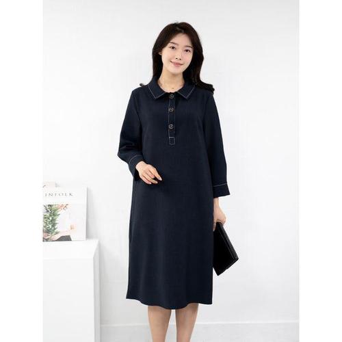 [모슬린]엄마옷 스티치 반오픈 카라 원피스 MQG123852 마담 미시 중년여성 빅사이즈 할머니옷 50대 60대 ..