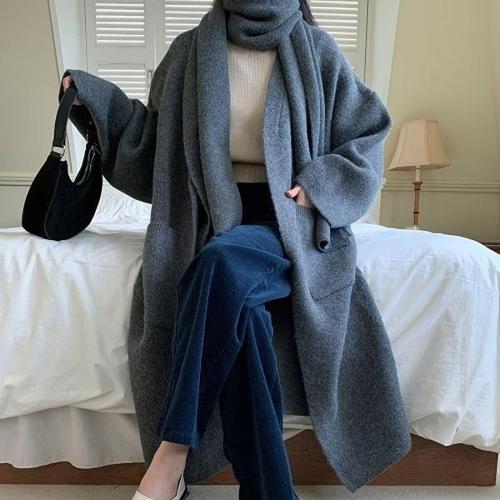 [옷자락][다잇템] 여자 단추없는 머플러니트 롱가디건 큰사이즈 브이 세트_18821130_588870