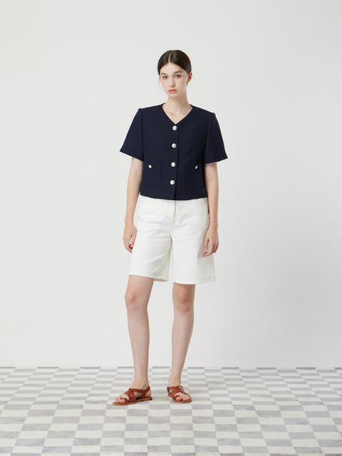 [위시드]노카라 반팔 트위드 자켓 (WIBBJK016)