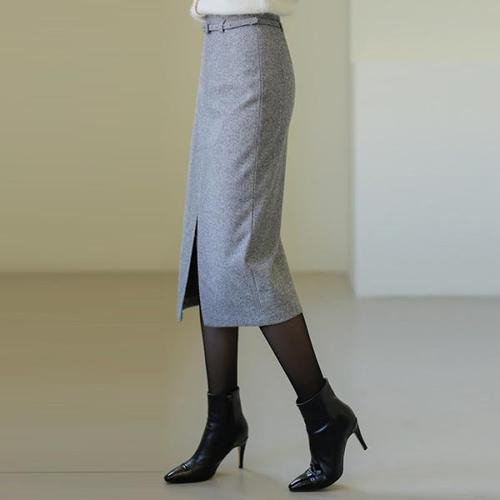 [스타일온미][스타일온미] 벨로나 벨트SET 울 블렌딩 모직 헤링본 H라인 앞트임 롱 스커트