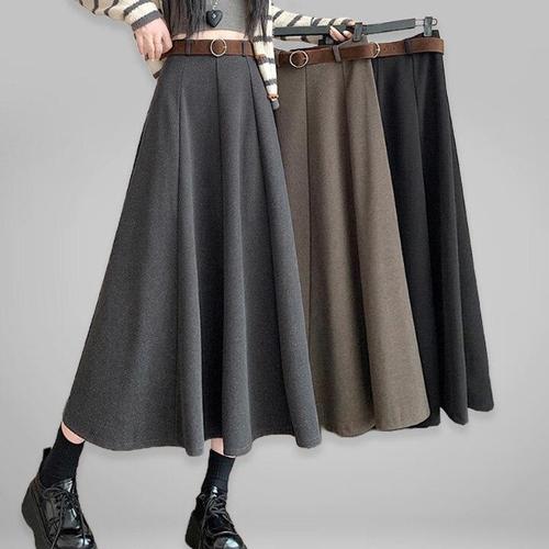 [페이릿][페이릿] [77까지][스커트+벨트] 메비 웜 데일리 A라인 모직 롱 스커트