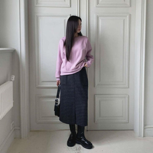 겨울 치마 원피스 체크 쉬폰 롱 무드 트림 오피스룩 모직 스커트 가을 하프 라인