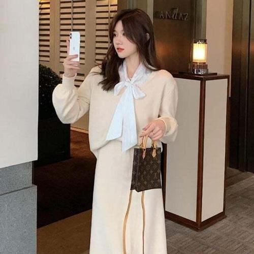 분위기갑 브이넥 니트 스커트 상하세트 투피스 셋업 롱치마 긴팔 봄 가을