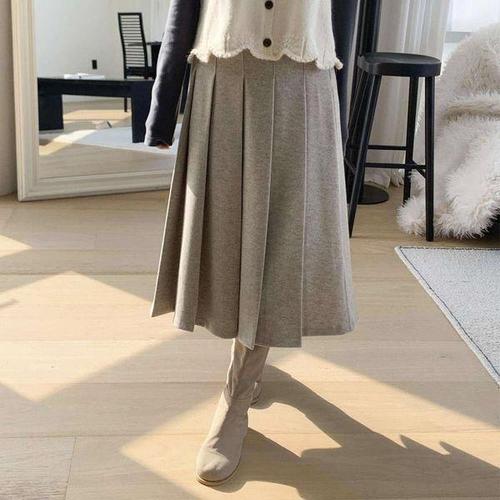 옷자락 / 여성 레이온 코튼 모직 도톰 맞주름 a라인 롱 스커트