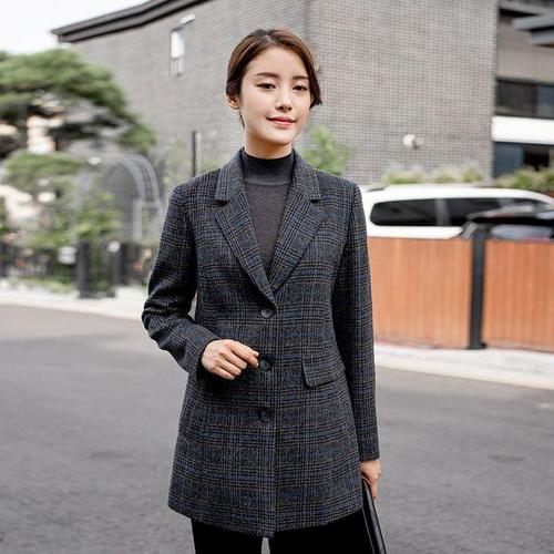 자켓 여성겨울의류 체크 캐주얼정장 루즈핏 모직 겨울 기본템 여성 겨울 아우터 자켓 의류