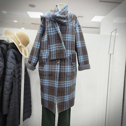 (런칭가 168,000원) (25FW) 호주산 컬링 양모100 롱코트 + 머플러 SET