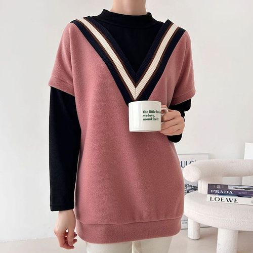 [옷자락]여성 자수 레이어드 반목 오버사이즈 긴팔 니트