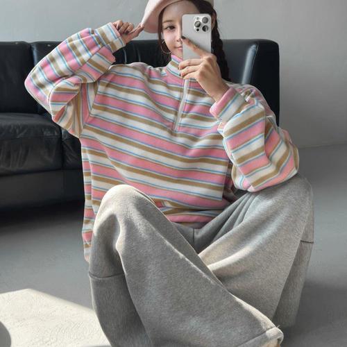 옷자락 / 여자 플리스 반집업 하이넥 오버핏 기모 겨울 맨투맨