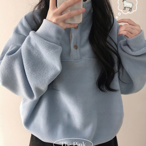 더핑크 / 엔트 루즈핏 하이넥 반버튼 기모 후리스 기모 맨투맨