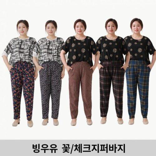 겨울 꽃기모 지퍼 몸빼바지 김장바지 빅사이즈 배기팬츠 엄마옷 편한 할머니옷 방한 보온