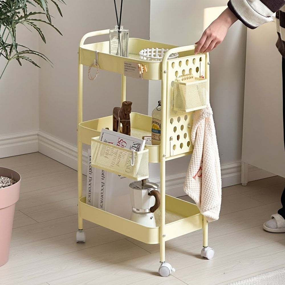 리뉴얼 버터크림 트롤리 3단 이동식선반 무빙 카트 웨건