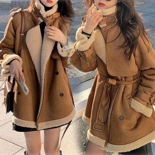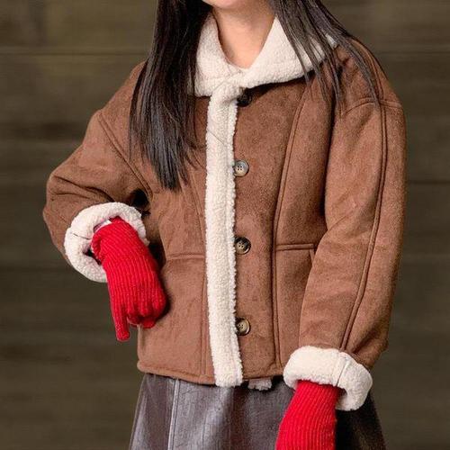 ANYOU 귀여운 양털 카라 스웨이드 무스탕 자켓 루즈핏 데일리 캠퍼스룩 겨울 아우터