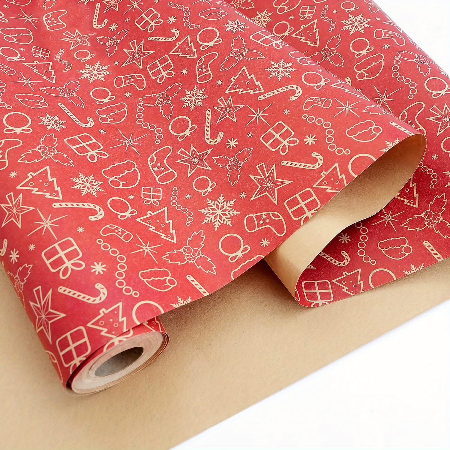 TEMU 크리스마스 선물 포장지 롤 - 17 인치 레드 크라프트 종이 눈송이, 크리스마스 모자, 스타킹, 나무 디자인 - 만화 패턴 종이 크리스마스, 남성 및 여성용 선물 포장 - 크리스마스 장식