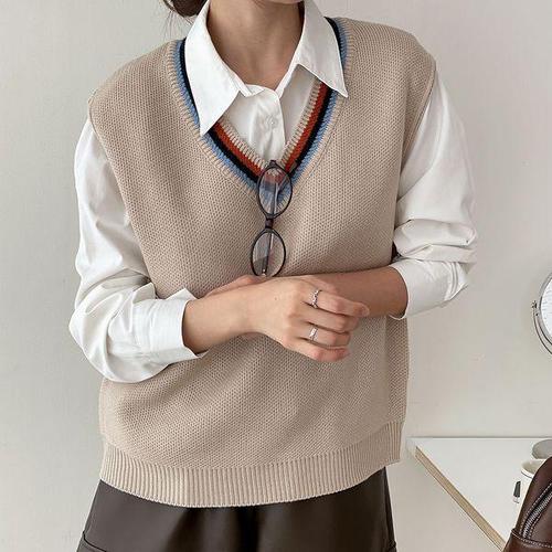[옷자락]여자 무지개 브이넥 가을 데일리룩 베이직핏 니트조끼