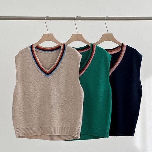 [신상오픈런]여성용 브이넥 무지개 니트조끼 가을 데일리 베이직핏