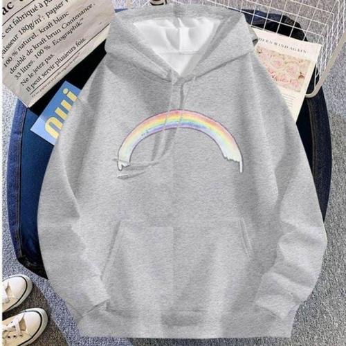 후드티 발랄한 퍼 무지개 라운드 티셔츠 안감퍼 WFLQDAM