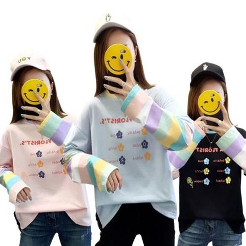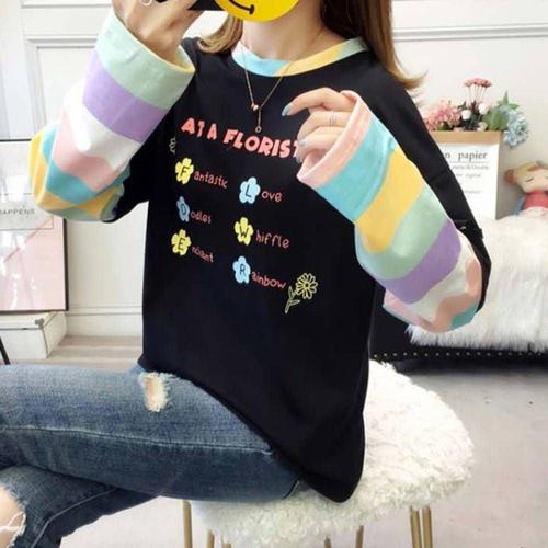 라운드넥 학생티셔츠 무지개 여자맨투맨티 겨울티 WFLQVT4