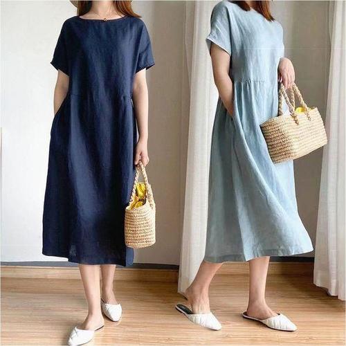 [에이치플러스몰]여자 여름 시원한 루즈핏 무지 반팔원피스 데일리 5컬러