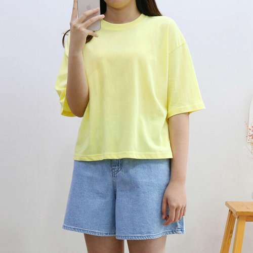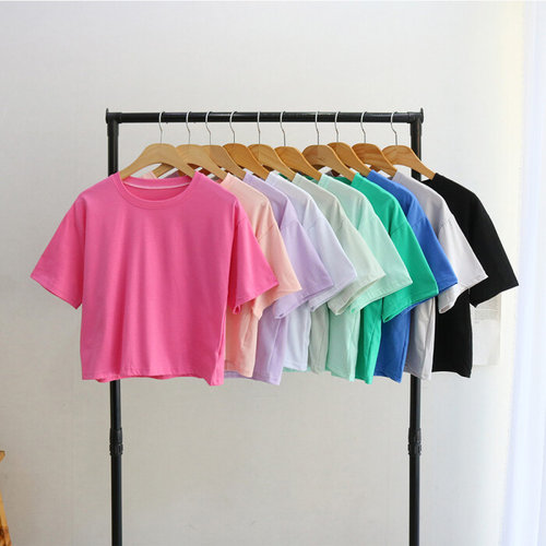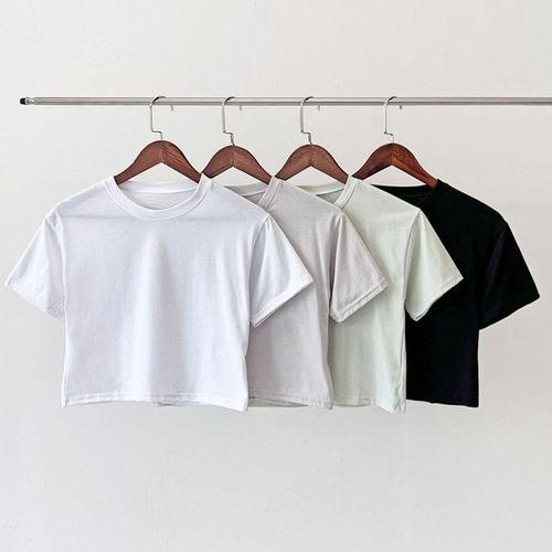 [에이치플러스몰]여자 여름 베이직한 무지 크롭 반팔티셔츠