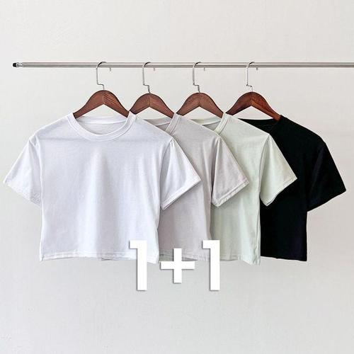 레이츄 / 1+1 에브리 루즈핏 무지 크롭 반팔 티셔츠