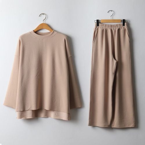 여성 기모 면 무지 퍼프 크롭 맨투맨 와이드 팬츠 트레이닝 세트 츄리닝 투피스 -WPST0280- 겨울