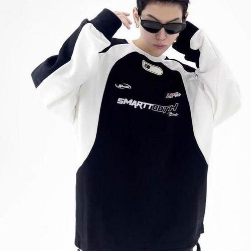 [셀러허브_여성트랜드패션]남녀공용 남자무지맨투맨 남자긴팔면티 카라티 오버핏 오버핏맨투맨 배색