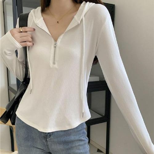 [엄지척]슬림핏 여성가을티셔츠 티셔츠 후드 무지 의류 반집업_19600754_667501