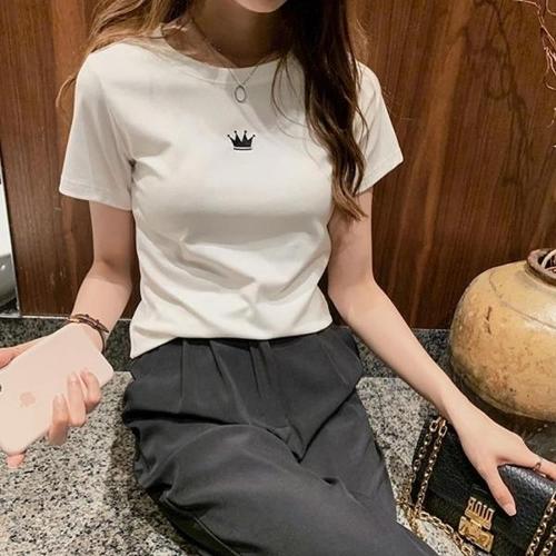 [엄지척]반팔티 여자 라운드 슬림 무지티 데일리 흰티 면티_19615543_667501