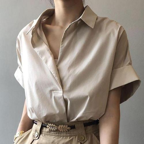 여성 5부 소매 무지 쉬폰셔츠 상의 여름셔츠 반팔
