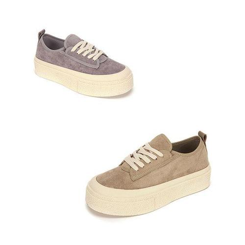 무크 양가죽 밴딩끈 웨빙 사이드 배색 스티치 키높이 스니커즈 4cm 5I6-322381