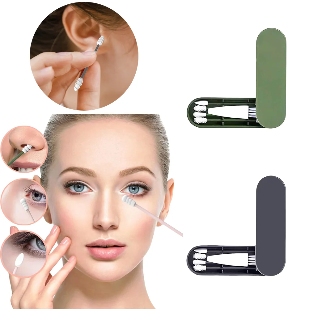 2Pcs 재사용 가능한 실리콘 귀 면봉 케이스 귀 청소 화장품 실리콘 버드 면봉 스틱 메이크업 청소를위한 양방향