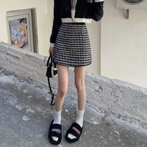 [셀럽하우스]여성 MIGO2207 클래식 미니 스커트 하운드투스 니트 숏스커트