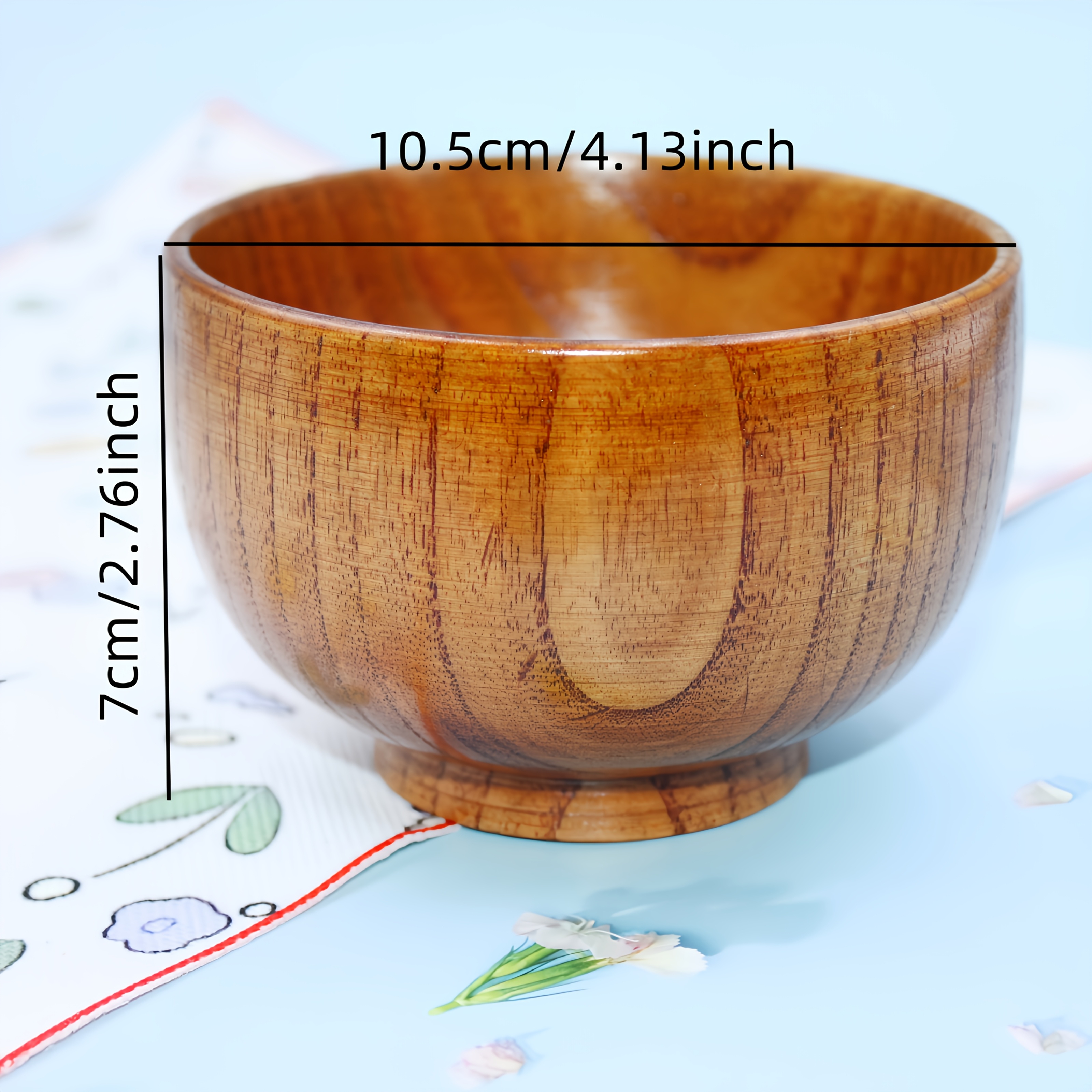 TEMU 일본 레트로 솔리드 우든 그릇 - 내열성 & 내구성 강한 캠핑 및 여행용, 천연 사펠레 나무 무늬 디자인 (쌀, 수프, 샐러드, 과일용) 주방용품