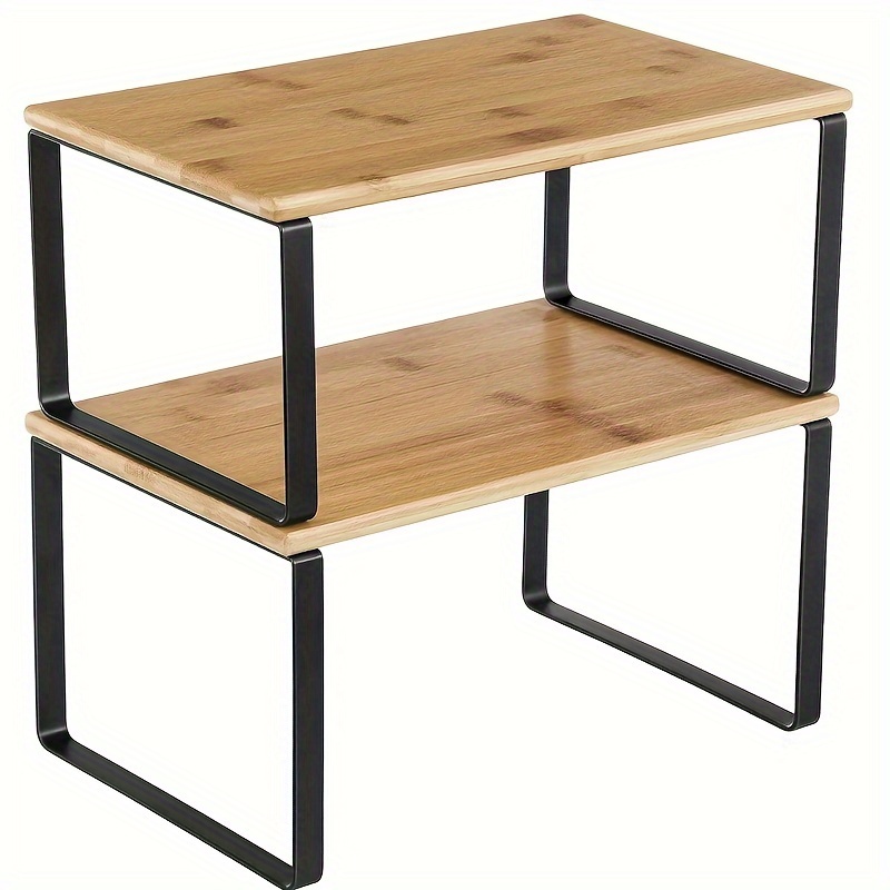 TEMU LDQ 캐비닛 정리함 2개, 주방 조리대 선반, 향신료 랙, 쌓을 수 있음, 확장 가능, 금속 및 원목, 주방 수납 캐비닛