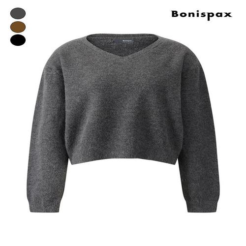 [보니스팍스]미니멀 V넥 루즈핏 크롭 니트 (XPBKP002M0)