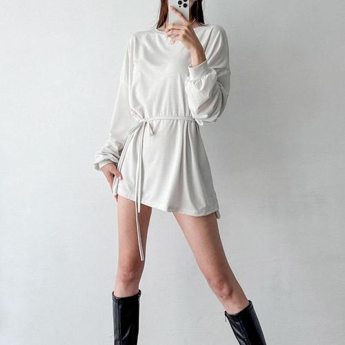 [신상오픈런]여성 리본 허리끈 보트넥 미니 원피스 빅사이즈 티셔츠