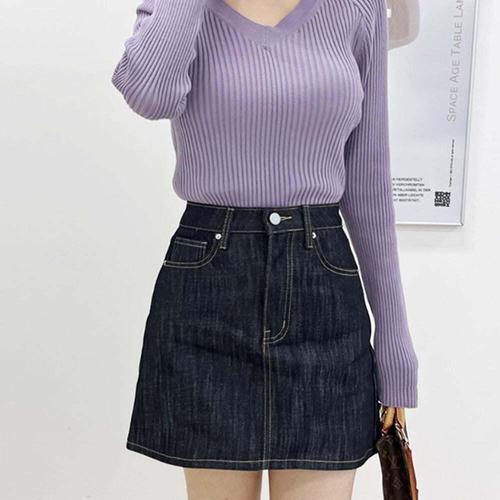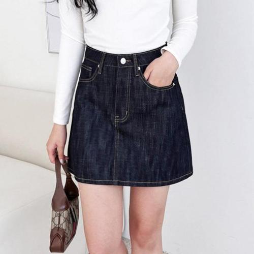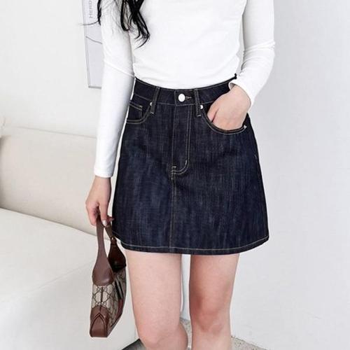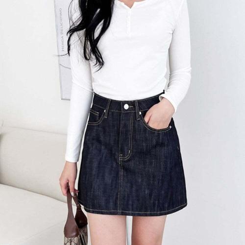 [셀럽하우스]A라인 BFVE4830 생지 데님 미니 스커트 슬림한 라인 캐쥬얼룩