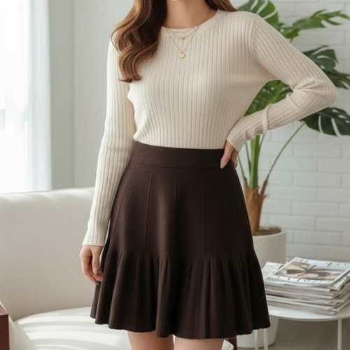 여자 겨울 데이트룩 A라인 절개 미니스커트